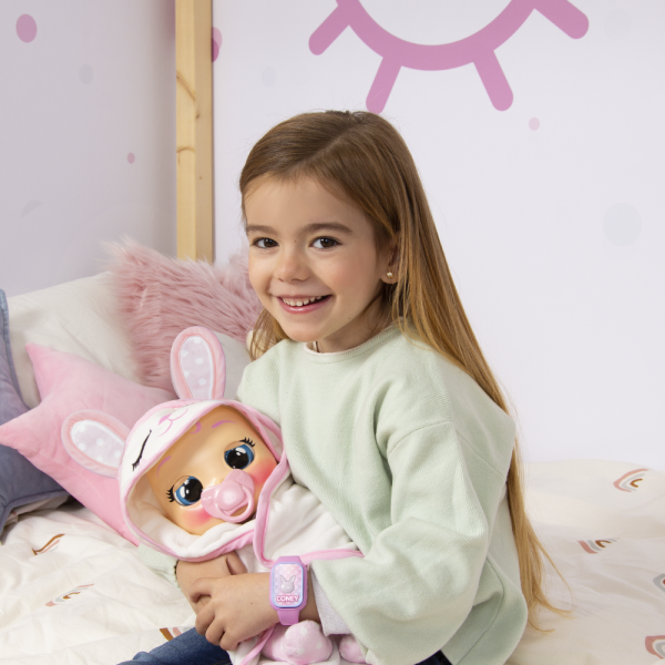Wie ein richtiges Neugeborenes braucht Newborn Coney ganz viel Wärme und Streicheleinheiten, um sich wohlzufühlen. Nimm sie in die Arme, kuschle sie in ihre warme Babydecke ein und sie wird langsam ihre Augen schließen, sobald du sie hinlegst. Mit ihrem Schnuller kannst du sie beruhigen, wenn sie weint. Ist Coney hungrig, füttere sie mit ihrem Babyfläschchen! Insgesamt gibt Coney 20 babyähnliche Laute von sich. Und natürlich kann sie, wie alle Cry Babies, auch echte Tränen weinen.